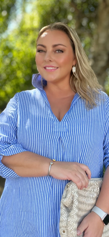 En klassisk skjortekjole, der forener elegance med praktisk alsidighed.