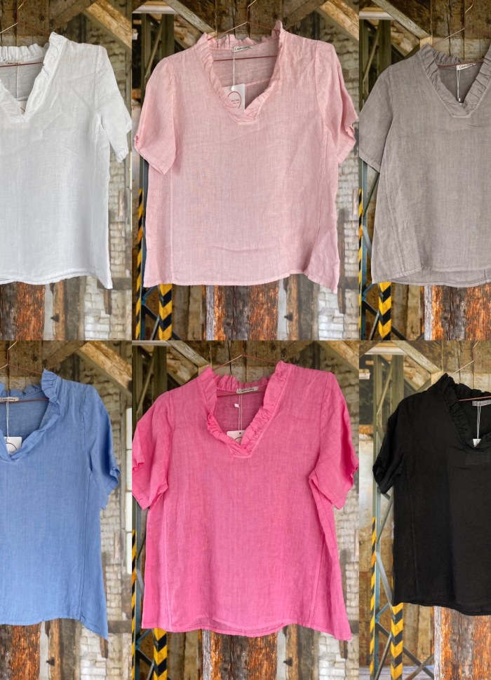 Cabana Living, flot hørbluse med korte ærmer, findes i flere farver, til kvinder